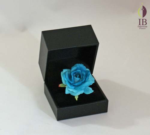 サムシング・ブルーのリング121109saと同じような感じでもう少し濃いめのブルーのバラで御願いたします。