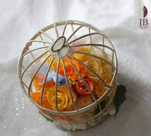 ご結婚や、記念日のお祝いとして大変人気の高い鳥かご装飾花です。