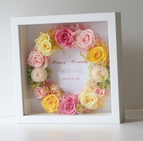 フレーム装飾は、アレンジと比べて、壁にかけて飾っていただけますので、