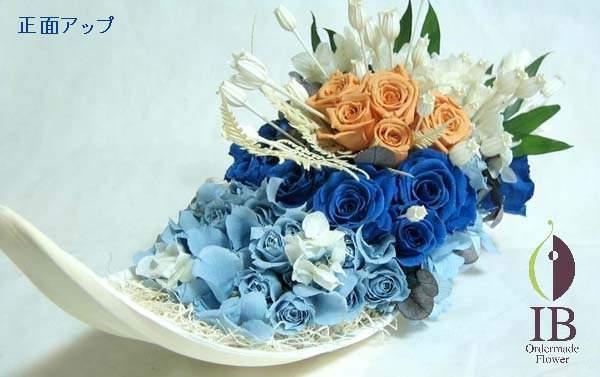 ブリザードフラワー バラ(クランブルー あさぎ)、アジサイ白 ブルー、
