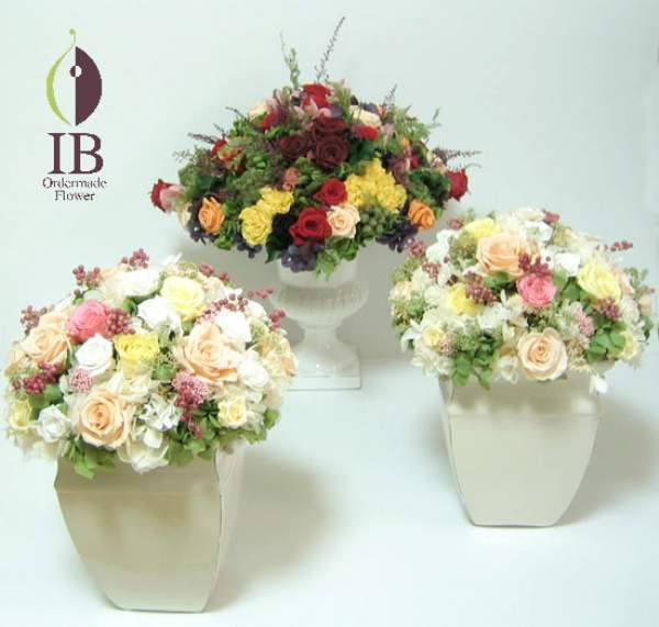 ジュリエットのような色とりどりのお花の配色で、楽しく、華やかな感じに仕上げました。
