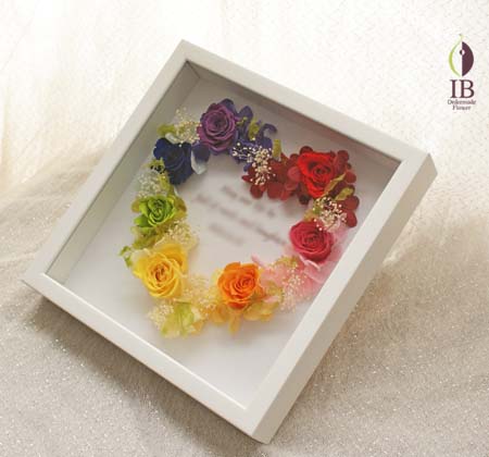 フレームに虹色のハートを形作って中にメッセージを入れてほしい。