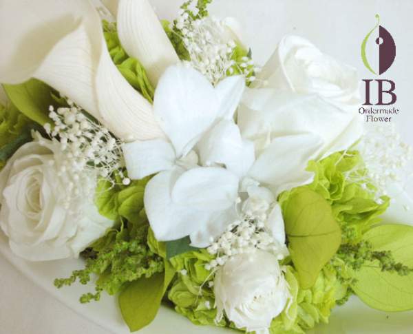 カラー アイボリー、 デンドロビウム白、アジサイライトグリーン、