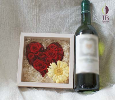 奥様へ感謝の10周年の感謝の気持ちを込めた赤いハートをフレームにお作りしました。