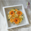 お誕生日お祝い用として、虹色のお花をフレームにお入れし、右下にメッセージを印刷いたしました。