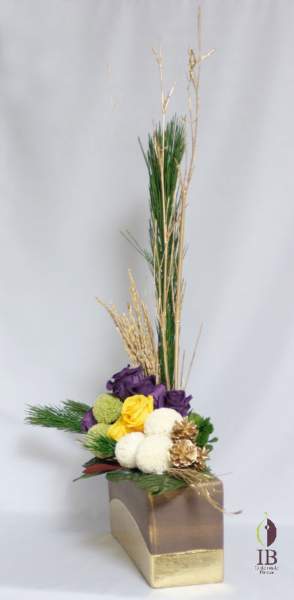 プリザーブドフラワー バラ(バイオレット、ゴールデンイエロー)