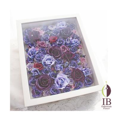 ご要望のご予算で、八つ切りサイズボックスフレームに紫系のバラを70輪お入れして製作させていただきました。
