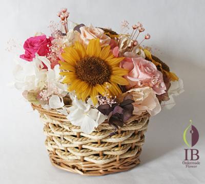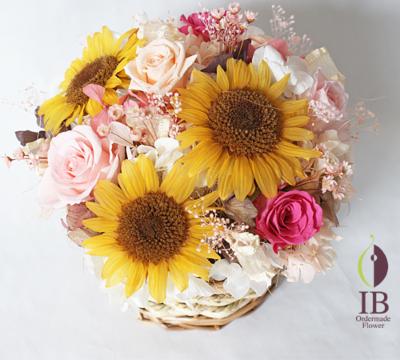 プリザーブドフラワーひまわり、バラ(ストロベリー、ピーチ、