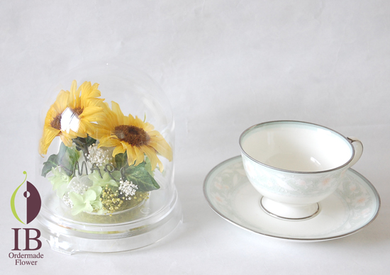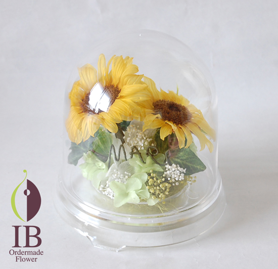 希少なプリザーブド加工のひまわりを使って、明るく元気なイメージで