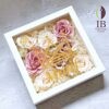 アクリルドームにカサブランカのお花と、淡いピンクのバラをお入れして