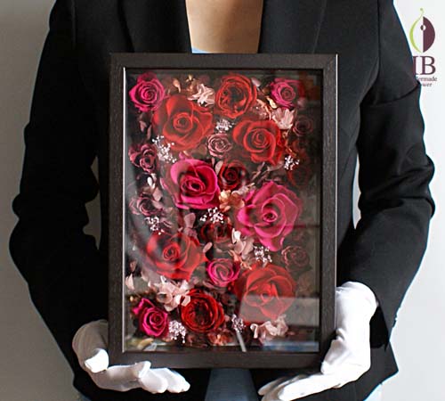 フレーム内に装飾いたしましたので、場所をとらず、より長時間美しさが保てます。
