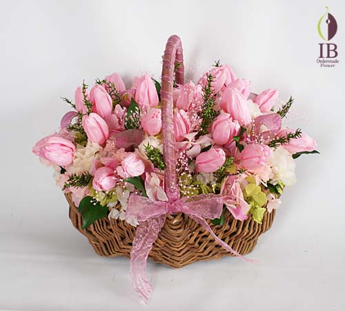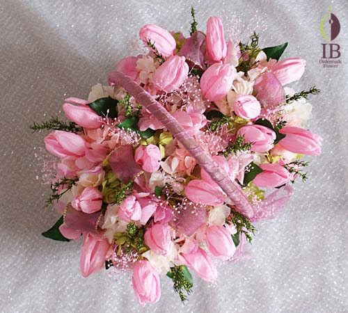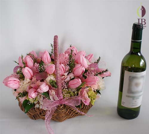 プレゼントされる方が大好きなピンクのチューリップを年の数だけお入れいたしました。